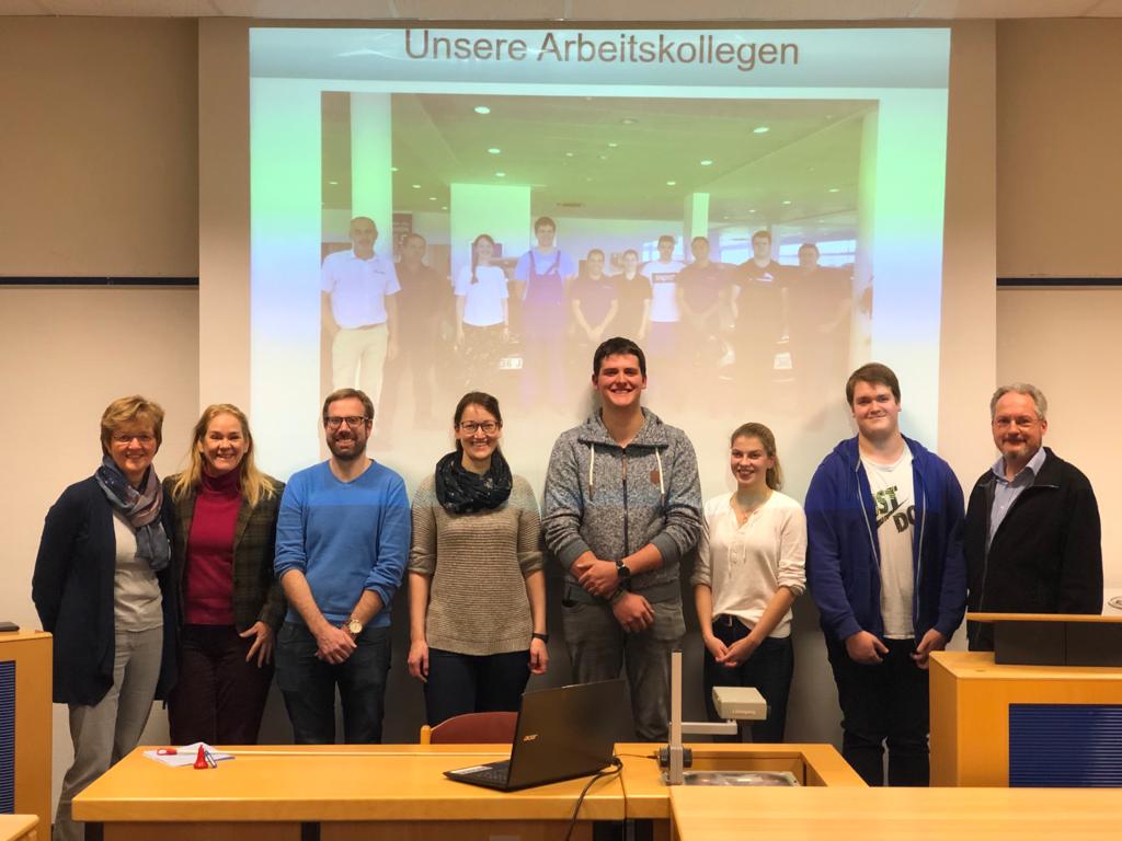 Besonders gefreut haben sich die das Projekt begleitenden Lehrkräfte über den Besuch von Frau Stehling von der Firma Ewers Karosserie- und Fahrzeugbau GmbH & Co. KG. Sie war extra aus Meschede zur Präsentation angereist und tauschte sich mit dem Projektleiter Herrn Steier und den beteiligten Lehrkräften Frau Lönze, Frau Auer und Herrn Bücking über den Benefit von Auslandspraktika für Azubis und Ausbildungsbetriebe aus. Wir danken sehr für ihren Besuch!